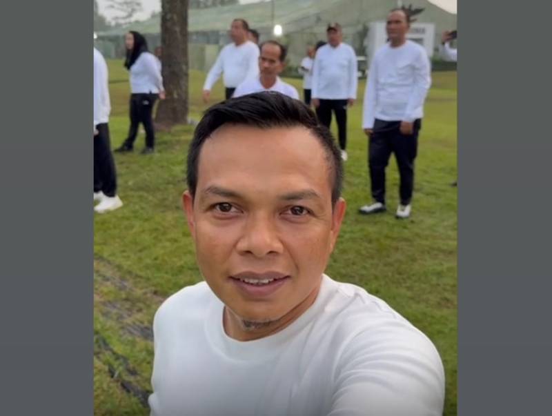 Bupati Konawe, Yusran Akbar saat mengikuti senam pagi di lokasi retret kepala daerah.