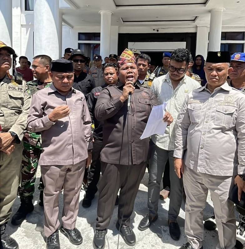 Momen paling emosional terjadi saat Ketua DPRD Konawe, I Made Asmaya, berdiri di hadapan massa. Dengan didampingi anggota DPRD lainnya seperti Kristian Tandabioh, Fakhrudin, dan Abd Rahim Lahusi, Made Asmaya menyampaikan apresiasi atas aksi damai yang berlangsung tertib.