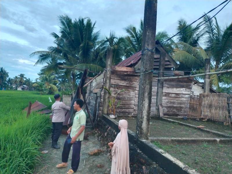 “Sekitar pukul 12 siang saya sedang istirahat di rumah, tiba-tiba terdengar suara gaduh dari luar. Angin menerpa pohon kelapa, saya panik dan keluar, lalu lihat atap rumah sudah terbang dan kusen ikut terangkat,” kisahnya.