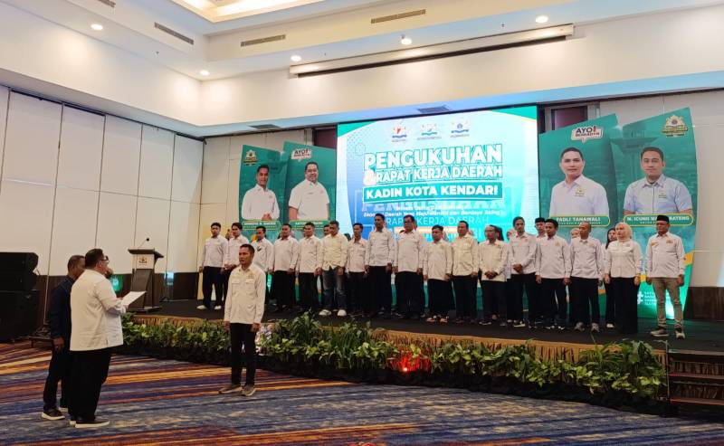 IDEALITA.ID: KENDARI – Kamar Dagang dan Industri (Kadin) Sulawesi Tenggara (Sultra) resmi mengukuhkan pengurus Kadin Kota Kendari periode 2024–2029, Kamis (23/10/2025). Pengukuhan tersebut dirangkaikan dengan Rapat Kerja Daerah (Rakerda) yang digelar di Hotel Claro Kendari, mengusung tema “Menata Dunia Usaha Menuju Ekonomi Daerah yang Maju, Mandiri, dan Berdaya Saing.”