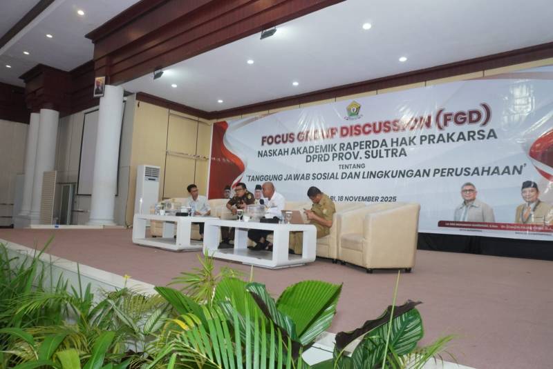 Dukungan itu disampaikan Wakil Ketua Bidang Hukum dan HAM Kadin Sultra, Supriadi, saat menjadi pembicara pada Focus Group Discussion (FGD) Raperda TJSLP di Kendari, Selasa (18/11/2025).