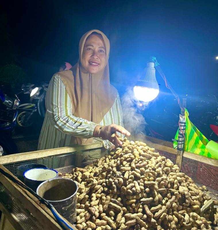 Berbeda dengan Riswaldi, Retno justru memilih berjualan di depan gerbang utama STQ. Ia datang dari Morowali bersama suaminya, berbekal semangat dan tumpukan kacang rebus. Informasi soal ekspo juga ia dapat dari teman sesama pedagang.