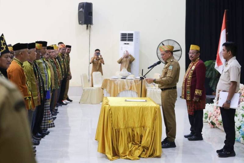 Prosesi pengukuhan tersebut dirangkaikan dengan rapat kerja Lembaga Adat Tolaki yang berlangsung di Hotel Tiga Putra, Selasa (16/12/2025).