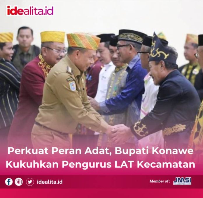 IDEALITA.ID: KONAWE – Bupati Konawe, H. Yusran Akbar, S.T., secara resmi mengukuhkan pengurus Lembaga Adat Tolaki (LAT) tingkat kecamatan se-Kabupaten Konawe. Pengukuhan ini menjadi bagian dari upaya pemerintah daerah dalam memperkuat kelembagaan adat serta menjaga nilai-nilai kearifan lokal di tengah dinamika pembangunan.