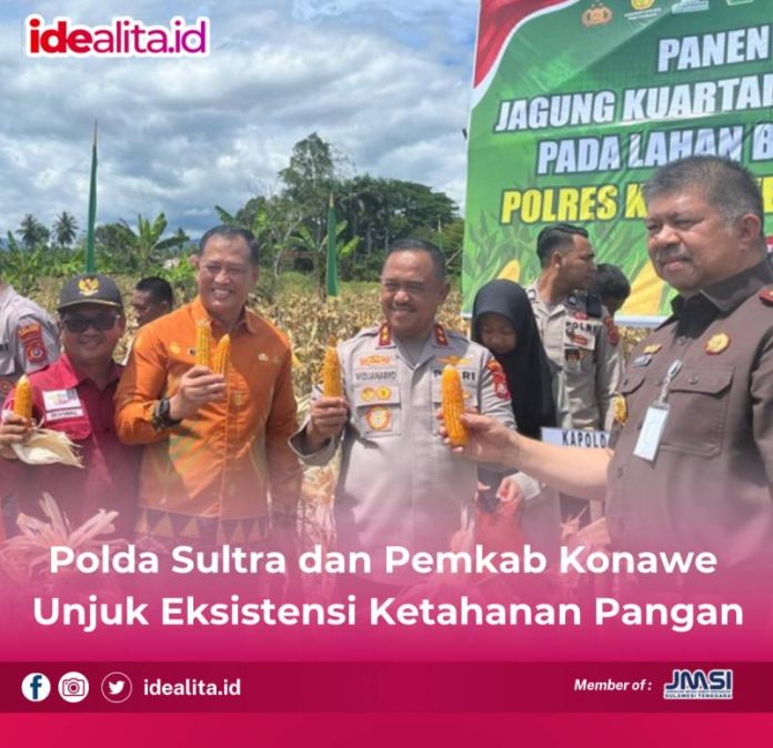IDEALITA.ID: KONAWE – Kepolisian Daerah (Polda) Sulawesi Tenggara bersama Pemerintah Kabupaten (Pemkab) Konawe menggelar Panen Raya Jagung Kuartal IV Tahun 2025, Kamis (13/11/2025).