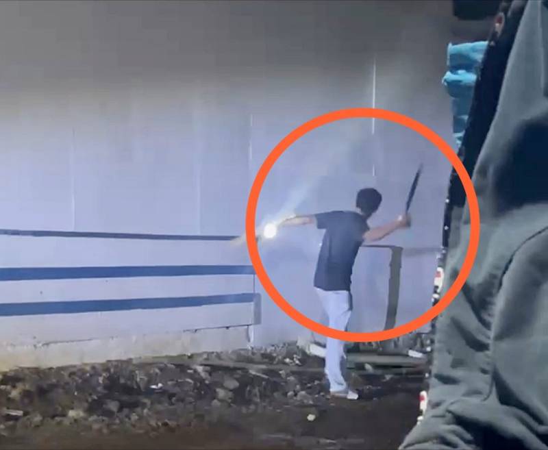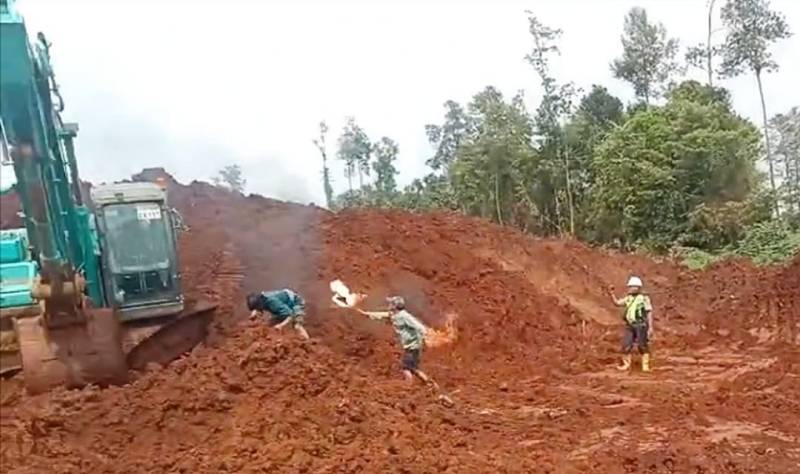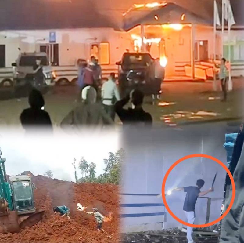 Seorang pria terekam hendak melakukan aksi pembakaran terhadap alat berat milik PT RCP.