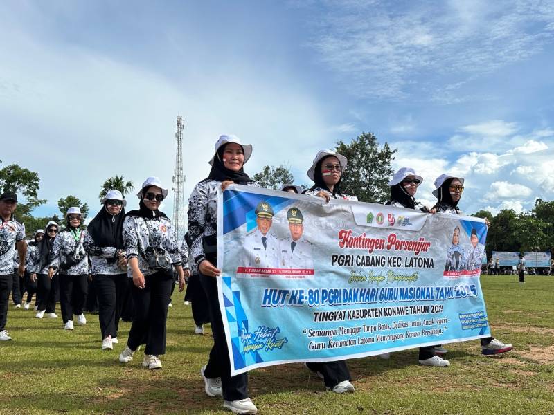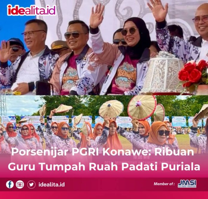 IDEALITA.ID: KONAWE – Pembukaan Pekan Olahraga, Seni dan Pembelajaran (Porsenijar) Hari Ulang Tahun (HUT) ke-80 Persatuan Guru Republik Indonesia (PGRI) dan Hari Guru Nasional (HGN) 2025 berlangsung meriah di Lapangan Banahi, Kelurahan Watundehoa, Kecamatan Puriala, Kabupaten Konawe, Senin (15/12/2025).