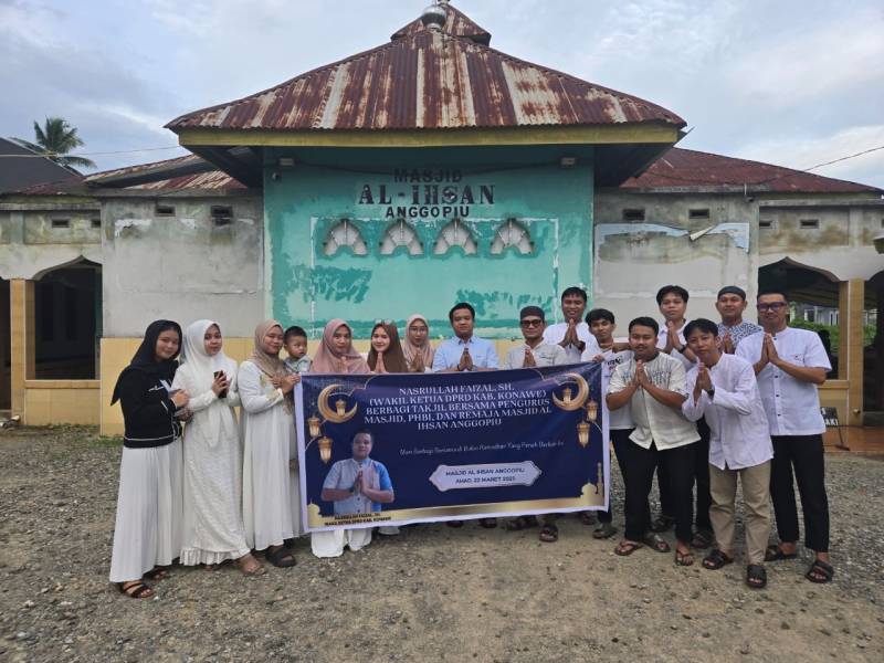 IDEALITA.ID: KONAWE – Semangat berbagi dan kepedulian terhadap sesama mewarnai suasana Ramadan di Desa Anggopiu, Kecamatan Uepai, Kabupaten Konawe.
