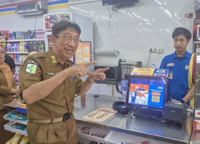 Kadis Dinkes Konawe, dr. Agus Lahida saat melakukan sidak di Indomaret Sapati yang viral dengan kasus ayam krispi isi belatung.