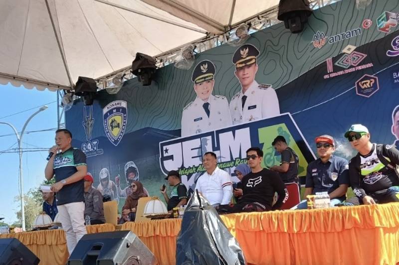IDEALITA.ID: KONAWE – Suasana meriah membalut Inolobunggadue Central Park (ICP) Unaaha, Sabtu (20/9/2025). Ribuan pasang mata menyaksikan momen bersejarah ketika Bupati Konawe, H. Yusran Akbar, ST, bersama jajaran Forkopimda — mulai Kapolres AKBP Noer Alam, Kajari Fachrizal, Sekda Dr. Ferdinand, hingga Ketua IMI Sultra Yusri Haharuddin — melepas 700 rider yang siap menaklukkan jalur ekstrem Jelajah Alam Konawe Raya.