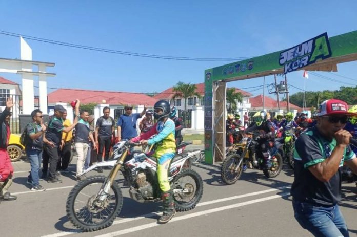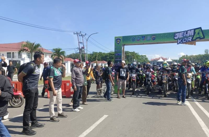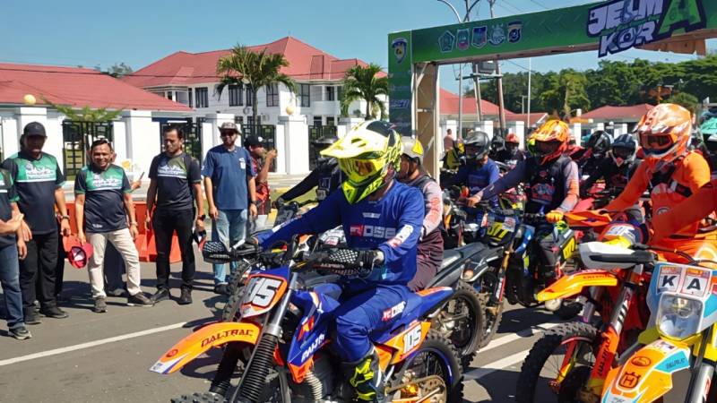 “Saya tidak mau panjang lebar, karena semua peserta sudah gatal ingin naik motor. Untuk rider dari luar daerah, karena belum kenal medan kita, tolong selalu saling mengingatkan,” kata Bupati Yusran dengan nada hangat namun tegas. Ucapannya langsung disambut sorak semangat para rider.
